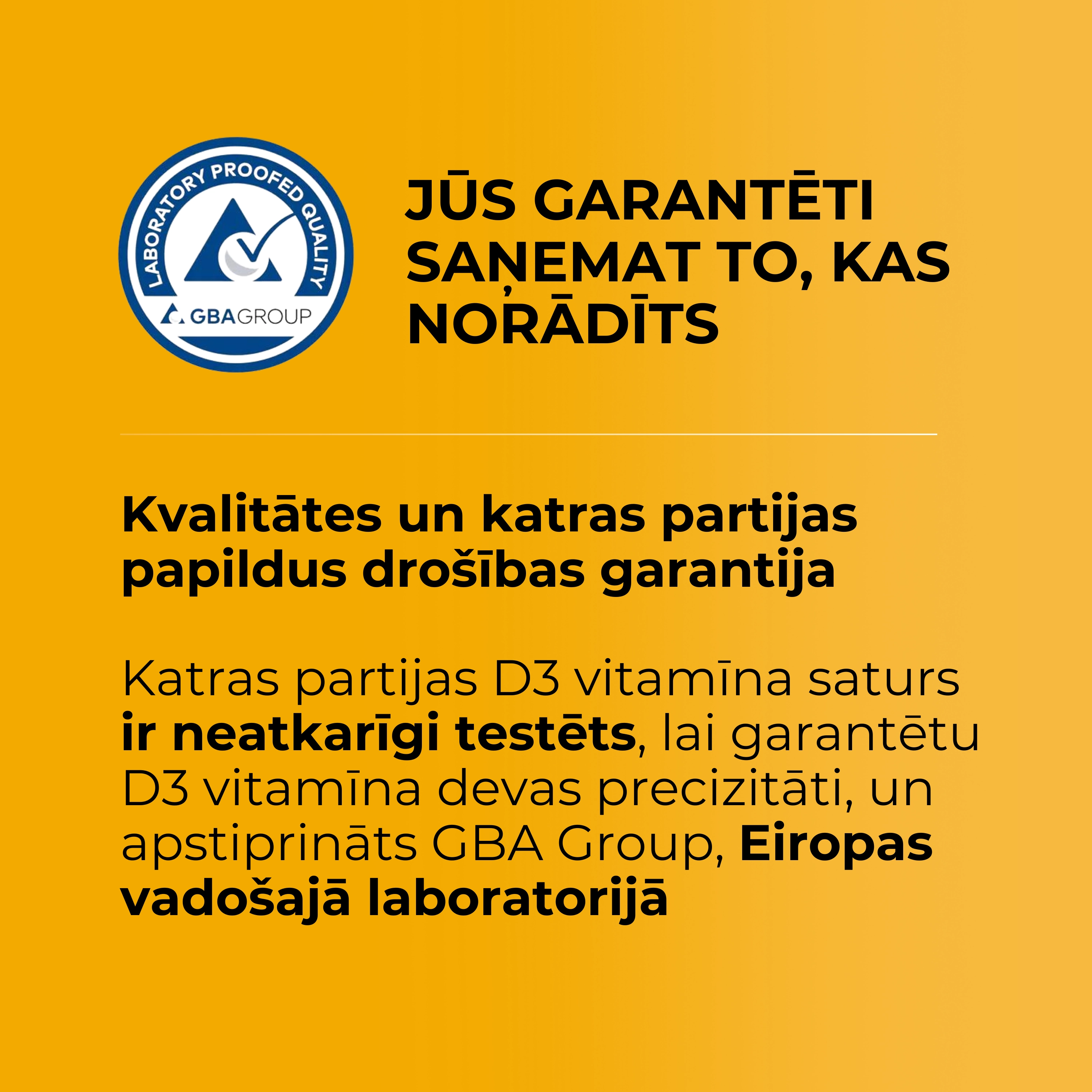 D3 vitamīns ar augstāko kvalitātes garantiju: mēs izmantojam tikai vislabākās sastāvdaļas un stingru kvalitātes kontroli, lai nodrošinātu, ka saņemat vislabāko D3 vitamīnu.