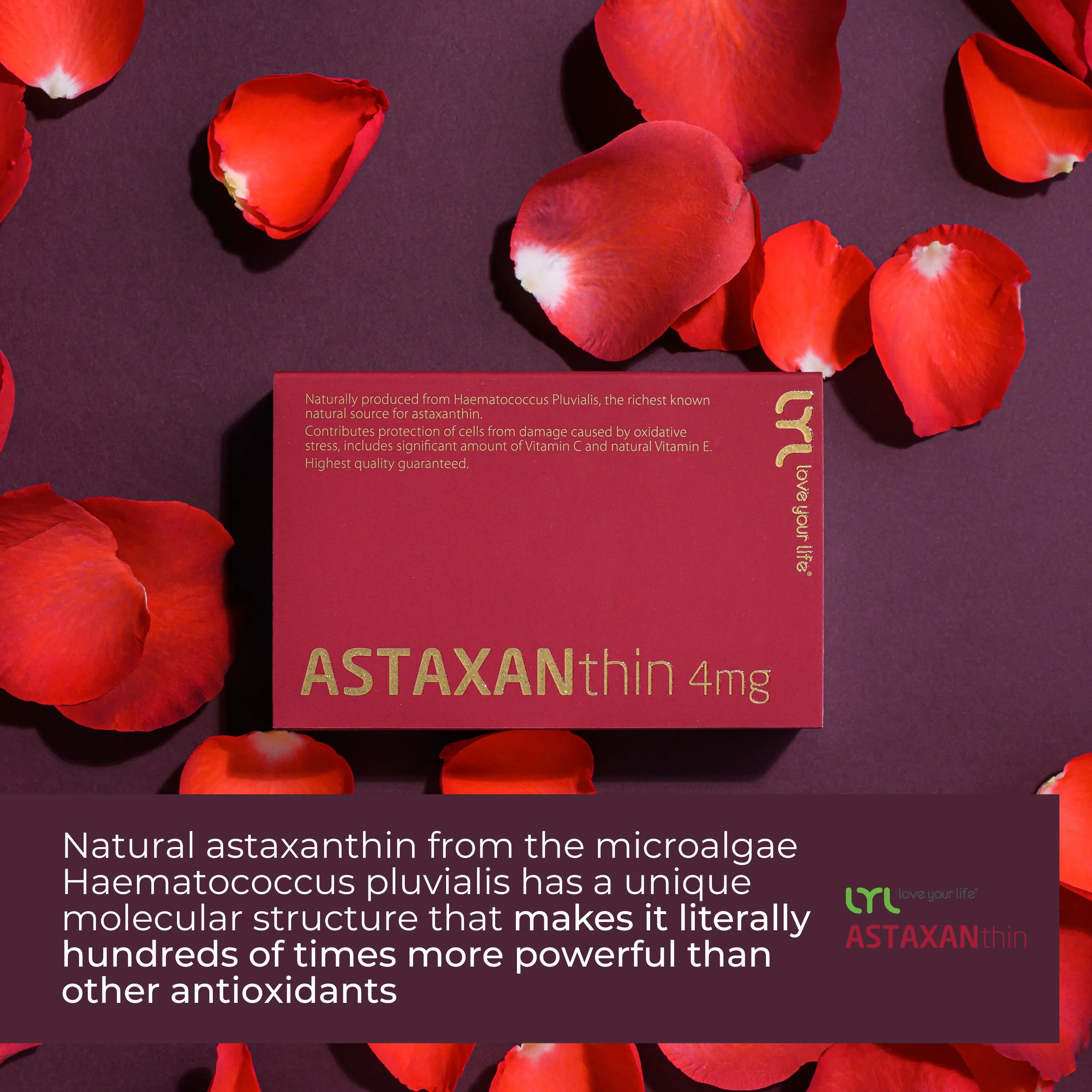 • LYL ASTAXANthin contains potent natural antioxidants that safeguard the skin against aging caused by environmental and genetic factors