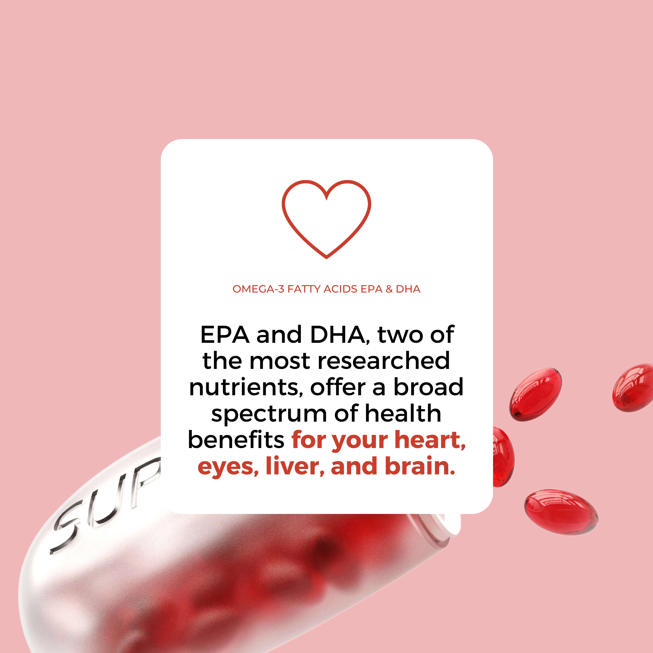 The benefits of Omega-3 EPA and DHA fatty acids are not limited to cardiovascular health. Omega-3 EPA & DHA fatty acids as well as the natural Astaxanthin, Choline, Triglecirides and Phospholipids contained in it are good for your immune system, brain, joints, eyes and skin health.