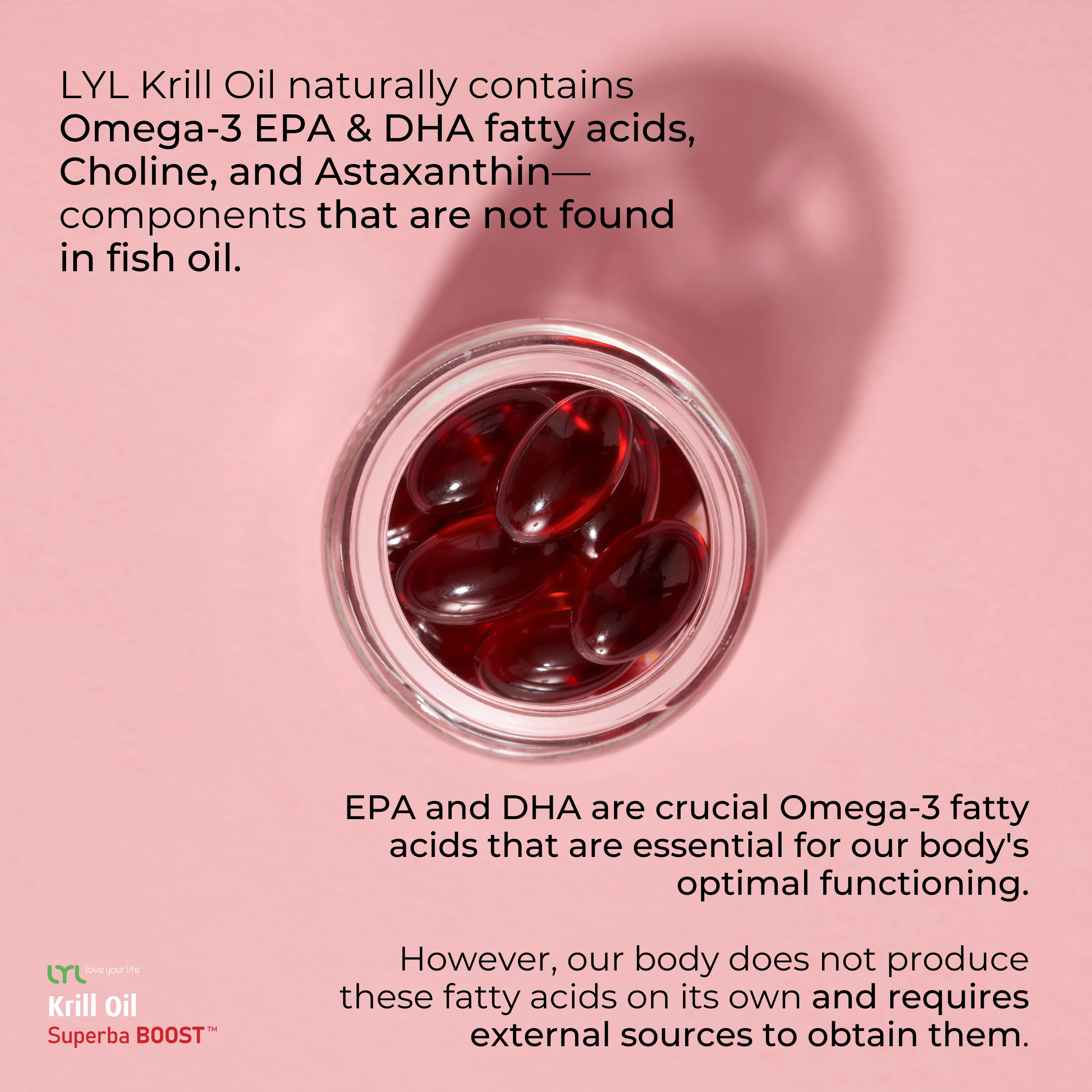 Omega-3 fatty acids in LYL Krill Oil help to make the skin feel smoother and softer by helping to keep it hydrated. They reduce water loss by helping our skin retain its moisture and elasticity.