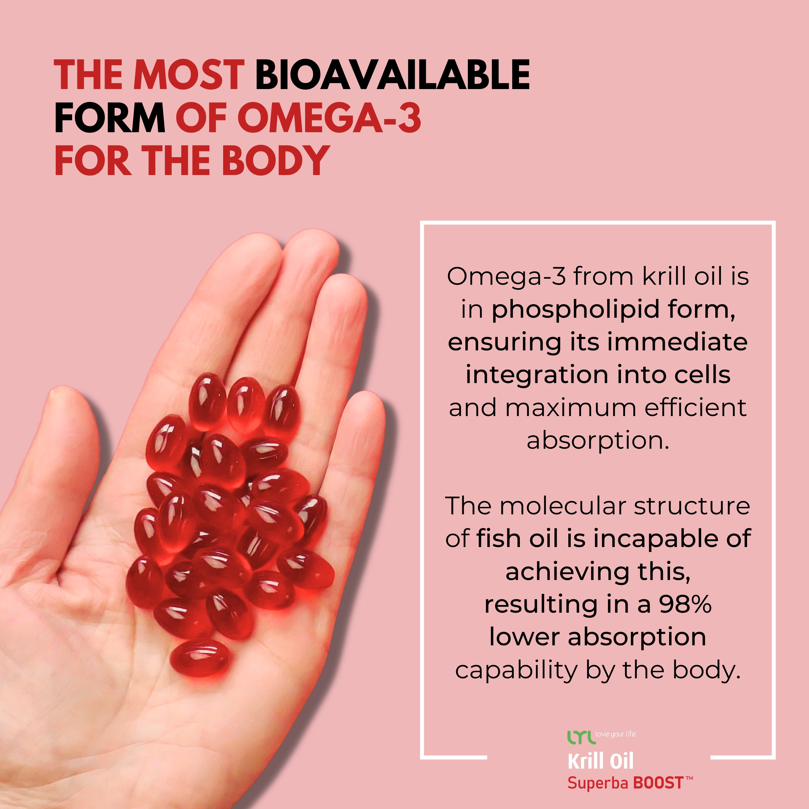 Omega-3 krill oils contain marine phospholipids, which make it easier for Omega-3 krill oils to be delivered to the body’s cells than Omega-3 fish oil sources