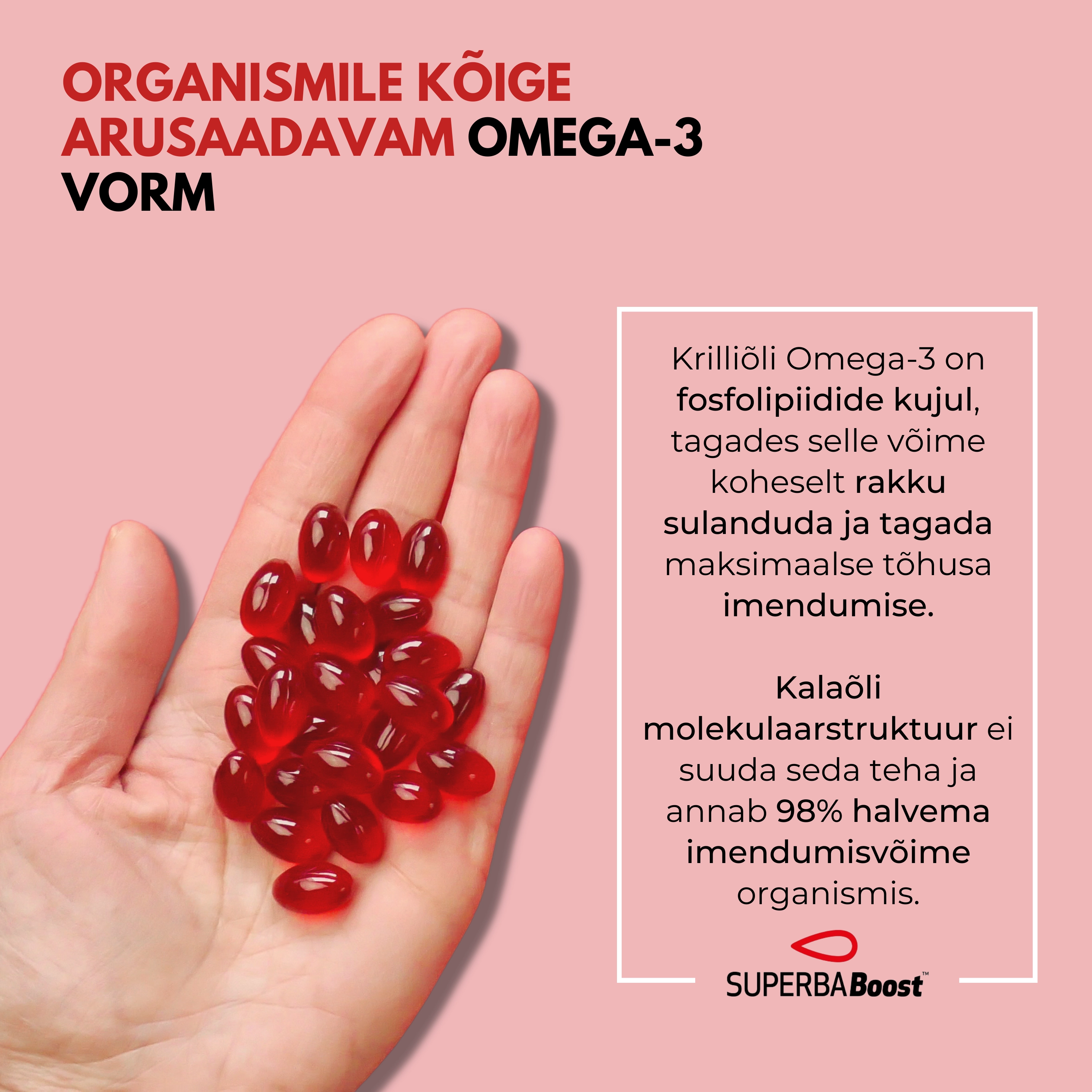 on tõestatud otsene seos Superba BOOST™-i kasutamise ja kasu vahel, mis tuleneb tervisele – südamele, maksale, ajule, nägemisele*