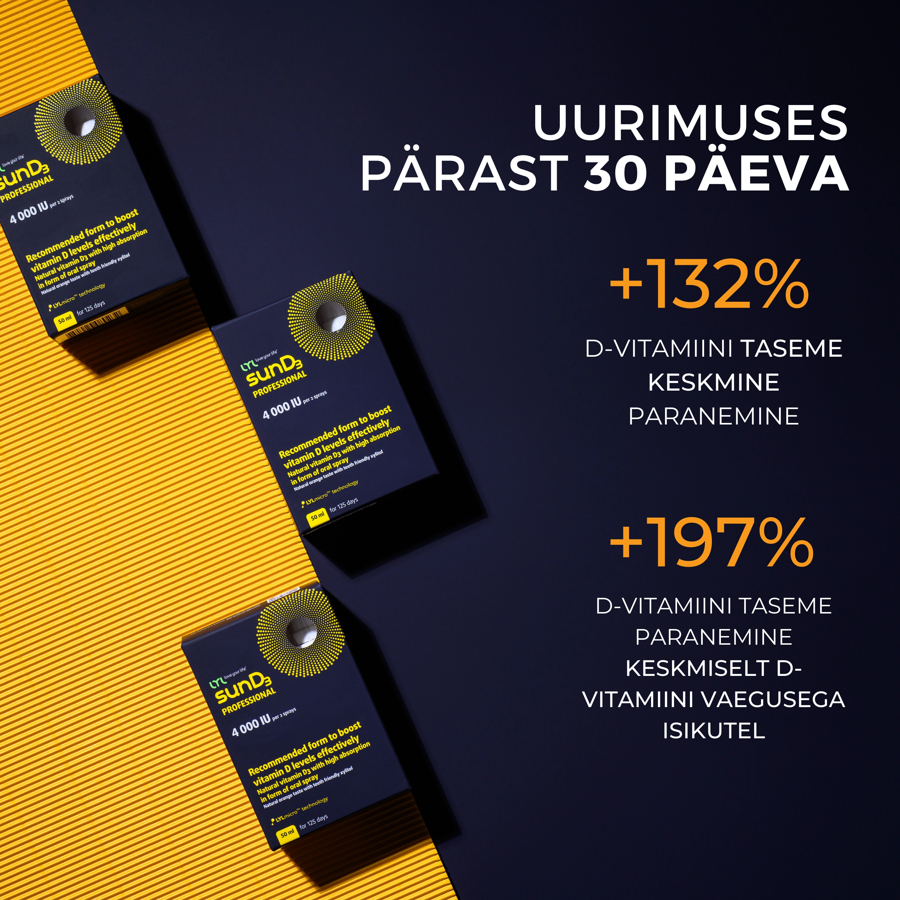 - LYLsunD3 suudab tõsta D-vitamiini taset veres ühe kuu jooksul 132%, ent D-vitamiini vaegusega inimestel 197%*.
