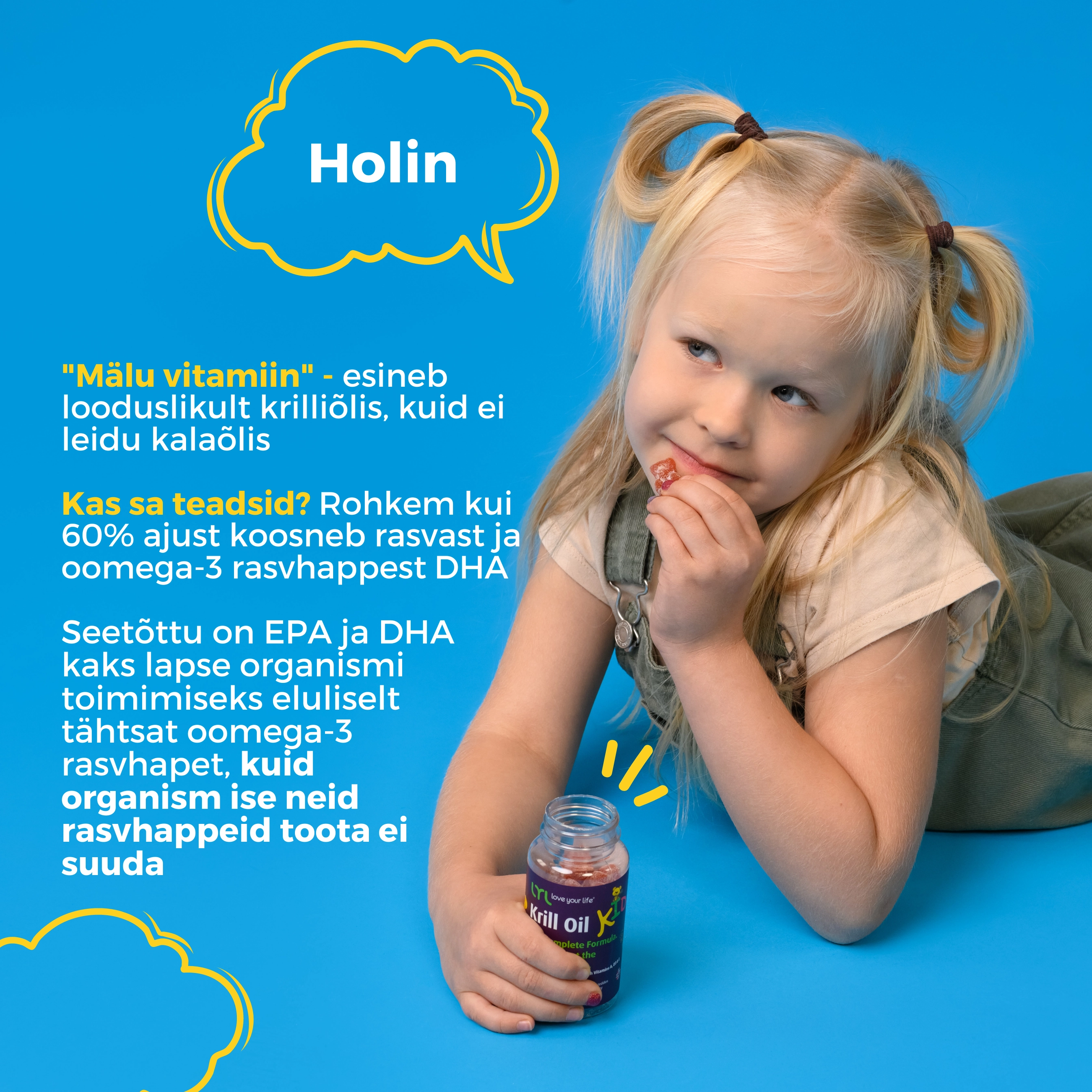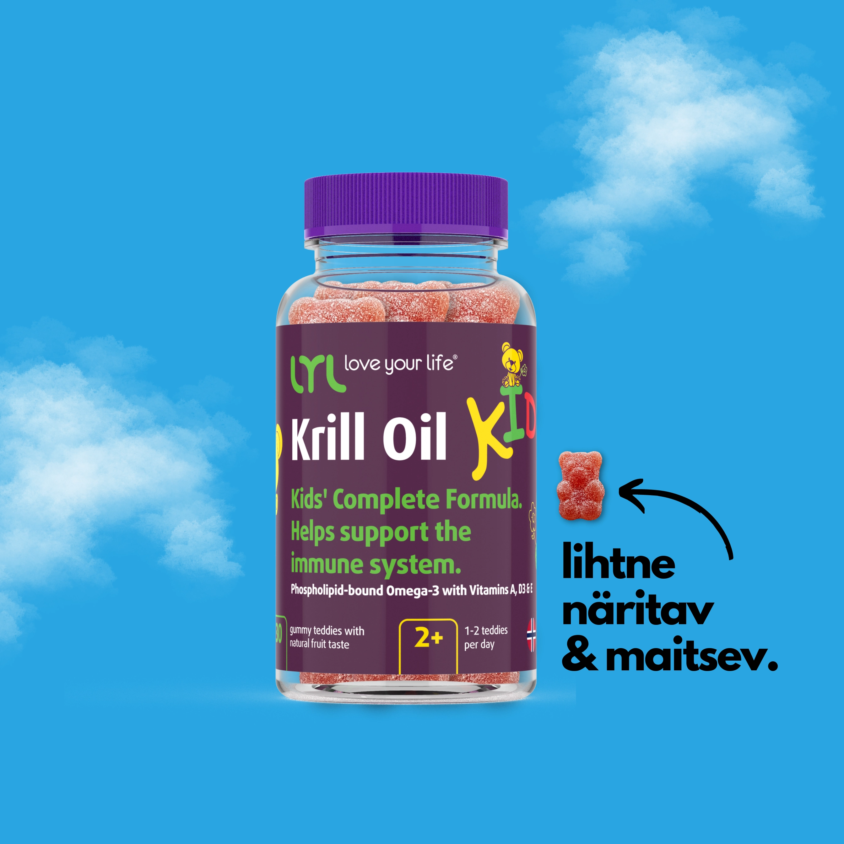Hea uudis on see, et maitsvad kummikarud Krill Oil KID tagavad vajalike oomega-3-rasvhapete manustamise.