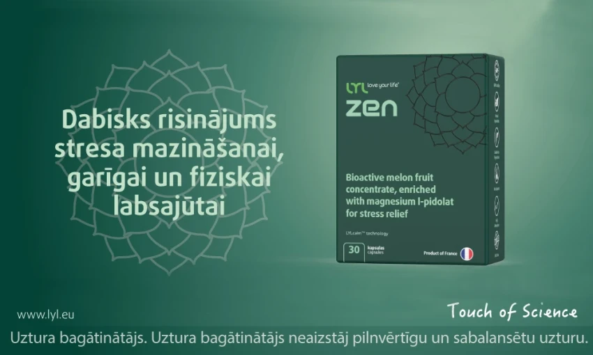 Žurnāls «Ieva» [4] deva padomu: sākt ar pašmāju farmācijas zīmola LYL love your life® uztura bagātinātāju LYL zen, kas ir dabisks risinājums stresa mazināšanai, garīgai un fiziskai labsajūtai.