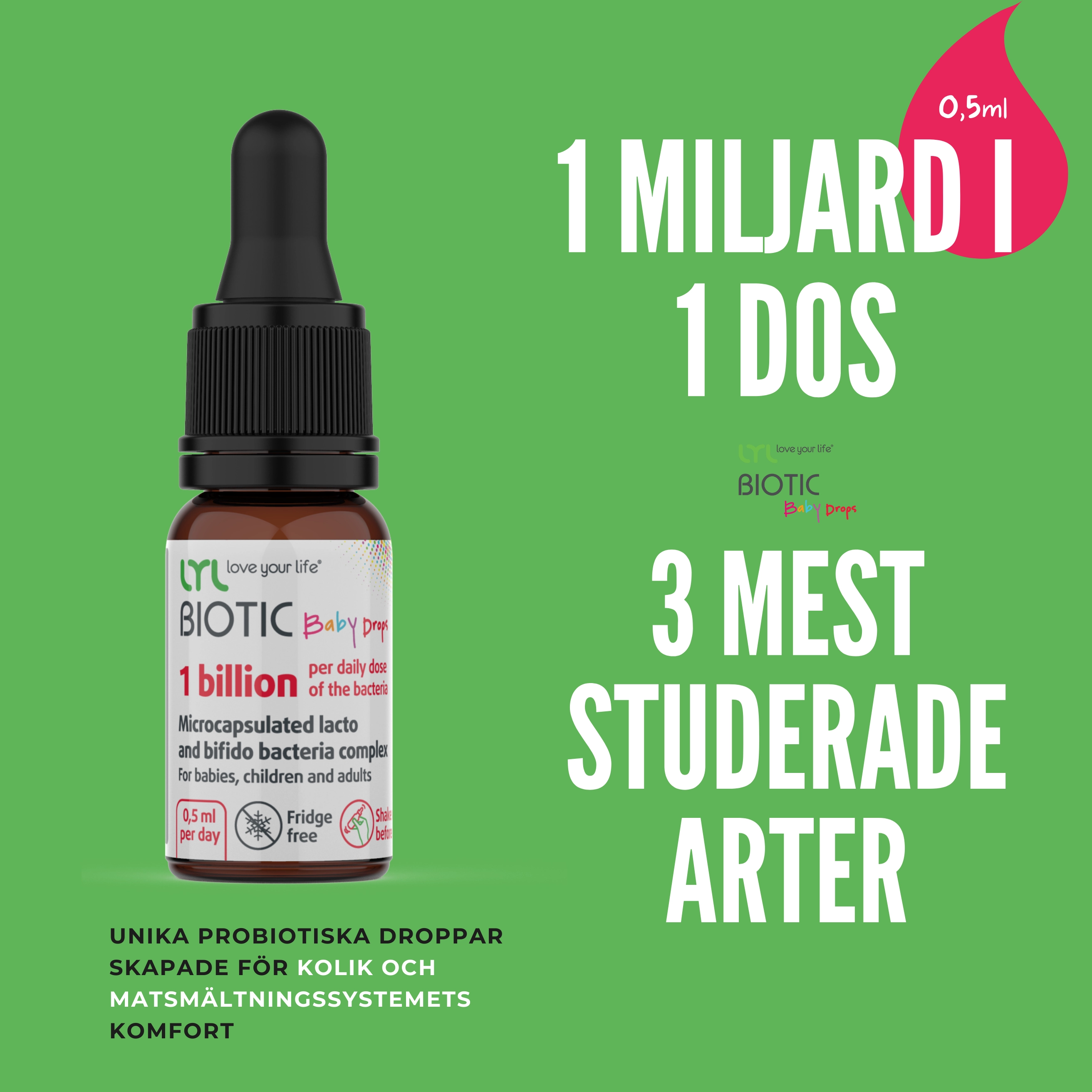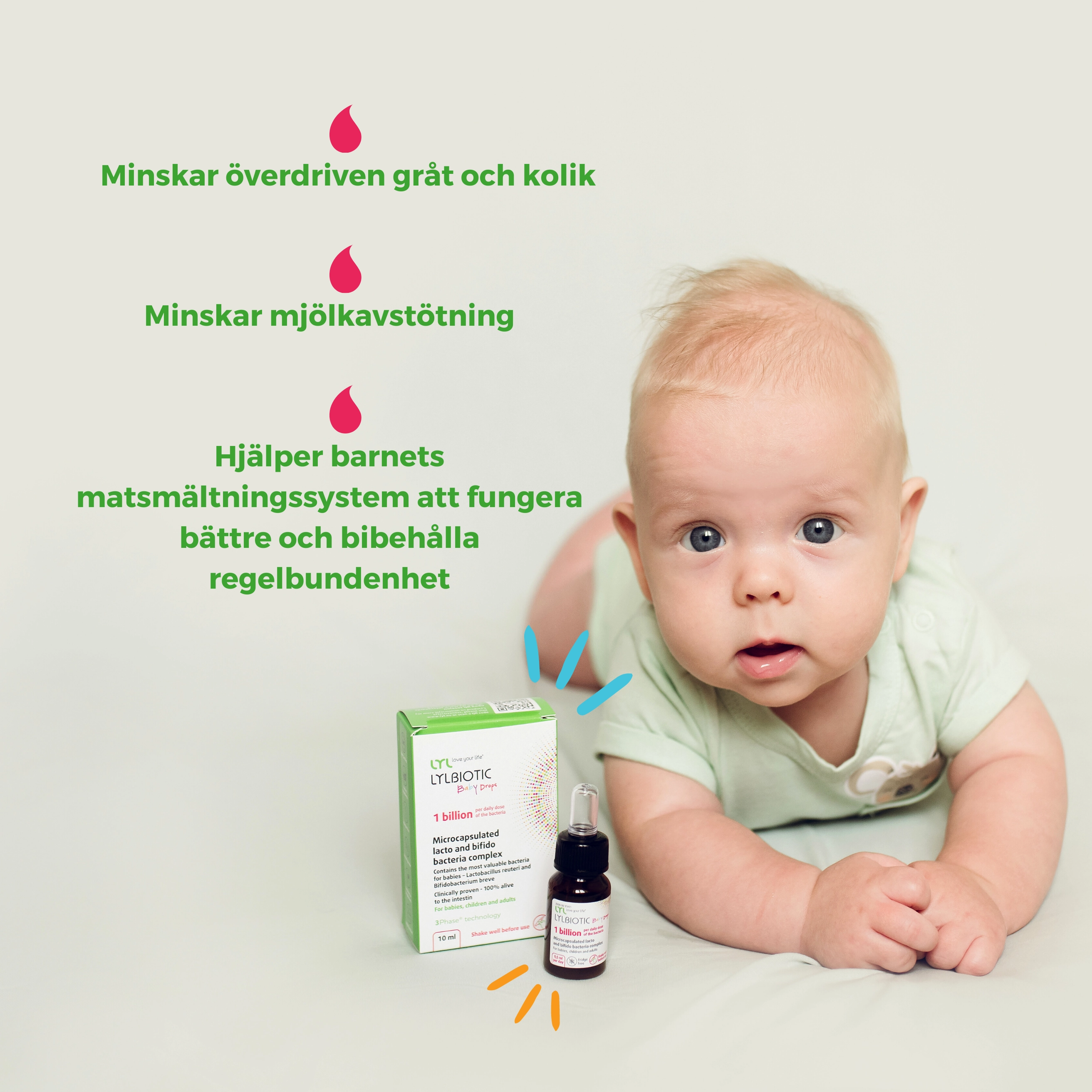 Den speciella inkapslingen garanterar att 100% av Baby Drops-bakterierna överlever när de ankommer till tarmarna. Normalt överlever endast 20% av de obelagda bakterierna transit genom magen och tolvfingertarmen